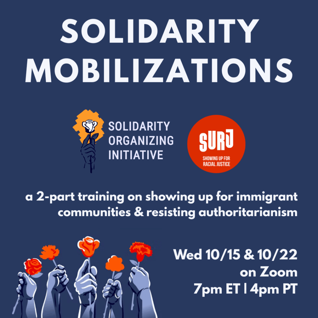 Across the country, immigrant communities are under attack and authoritarian forces are gaining ground. But there’s a growing movement of people ready to take action with clarity, courage, and discipline. This training is for all of us who want to stand up in solidarity, especially those of us who are white who are ready to organize, respond, and show up with commitment and care.